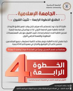 اخبار قسم التسجيل يرحّب بالطلبة الجدد لاستكمال المرحلة الرابعة من إجراءات القبول في الجامعة الإسلامية المزيد » ديسمبر 14, 2025