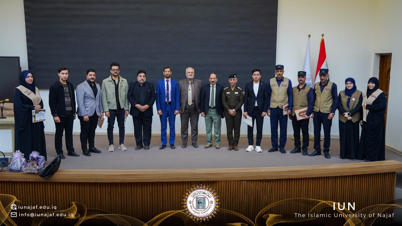 Islamic University, Najaf— under the patronage of Prof. Dr. Ammar Abdul Amir Al-Salami, President of the Islamic University in Najaf Al-Ashraf, the Continuing Education Centre and the College of Medical Technology, in collaboration with the Community Police in Najaf Al-Ashraf, hosted an educational lecture addressing the dangers of drug use. Colonel Diaa Kazim Majeed, Director of the Community Police Division in Najaf, delivered crucial insights on the symptoms associated with drug use, the underlying causes of addiction, and effective prevention strategies. He also provided an overview of the community police’s operational mechanisms and the services they offer to residents. The event featured a poetic theatre performance that highlighted the risks and consequences faced by drug users. Attendees included the university president, several college deans, faculty members from various departments, and a group of students, all engaged actively with the informative content presented during the lecture.