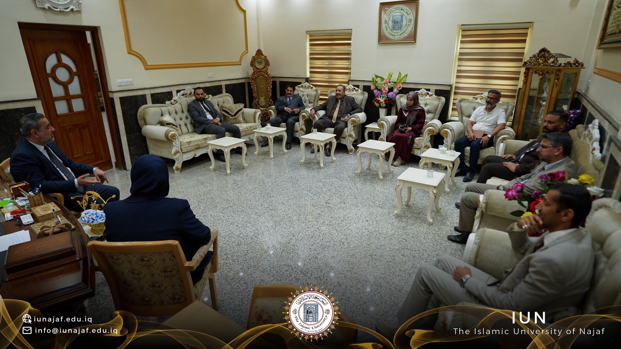 In an official visit, Assistant Professor Dr. Sahar Al-Hassani, Dean of the College of Education at the University of Kufa, visited the Islamic University in Najaf, where she was received by the President of the Islamic University, Professor Dr. Ammar Abdul-Amir Al-Salami, and the Dean of the College of Education at the Islamic University, Dr. Nazem Al-Salami.